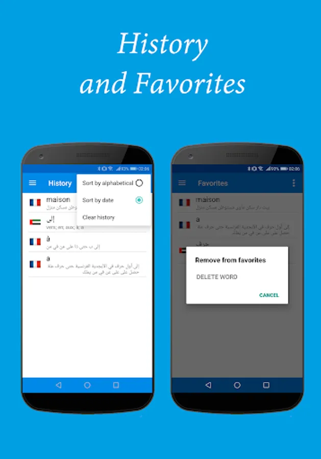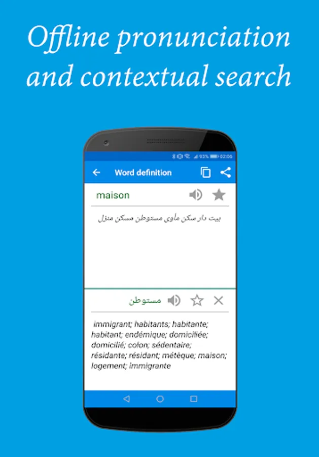 Tired carry a large and heavy dictionary? Now all you need is in your smartphone! French-Arabic and Arabic-French dictionaries offline be always with you, wherever you are - at school, traveling or doing French/Arabic at home. The dictionary contains about 140,000 of common and specialized words!