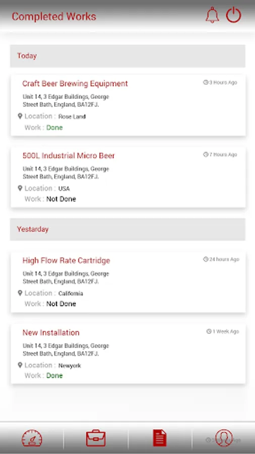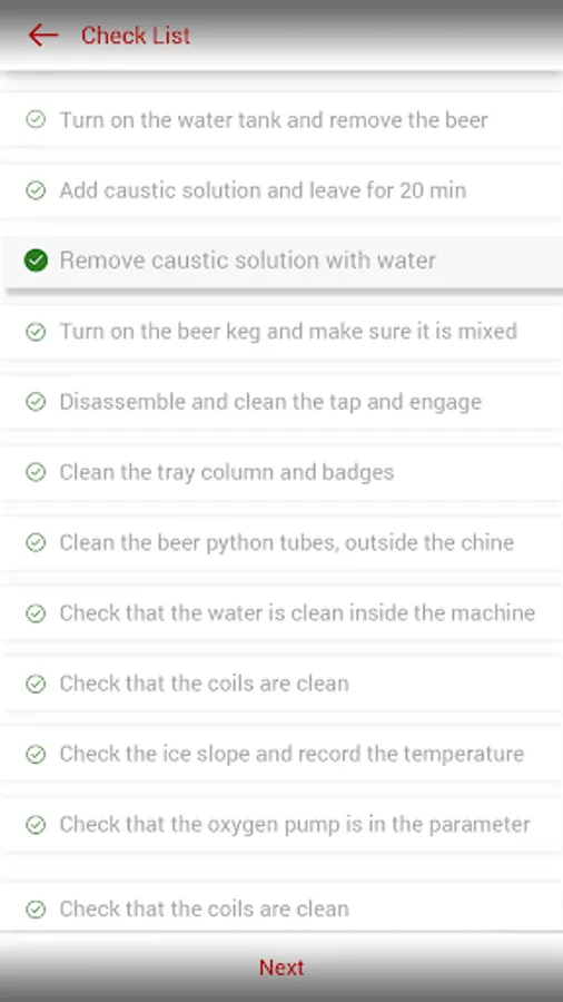 receive weekly tasks, get notification for preventive maintenance, Scan machine barcodes and see the machine description as well and last maintenance done; Perform the work and upload to data base; capture images and coordinates; take notes, see machine history