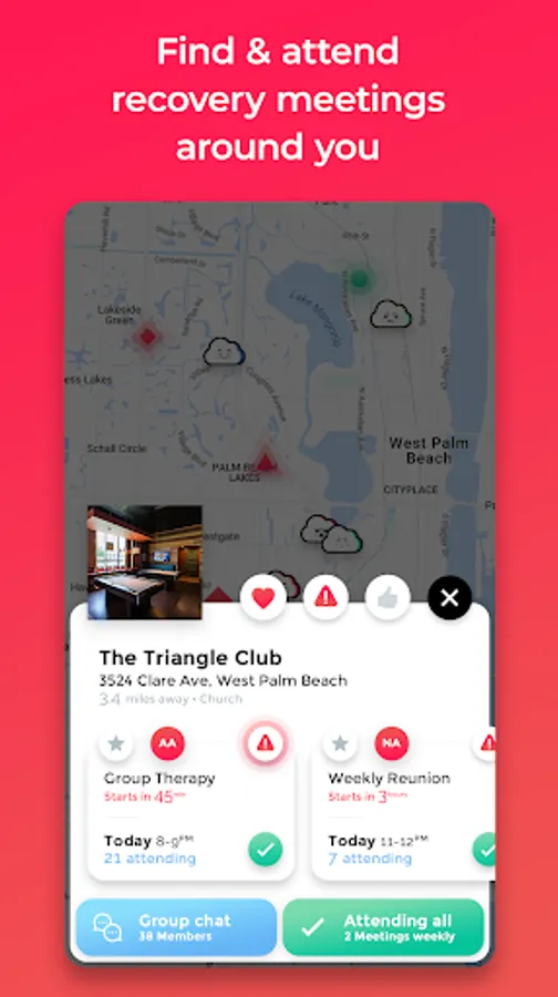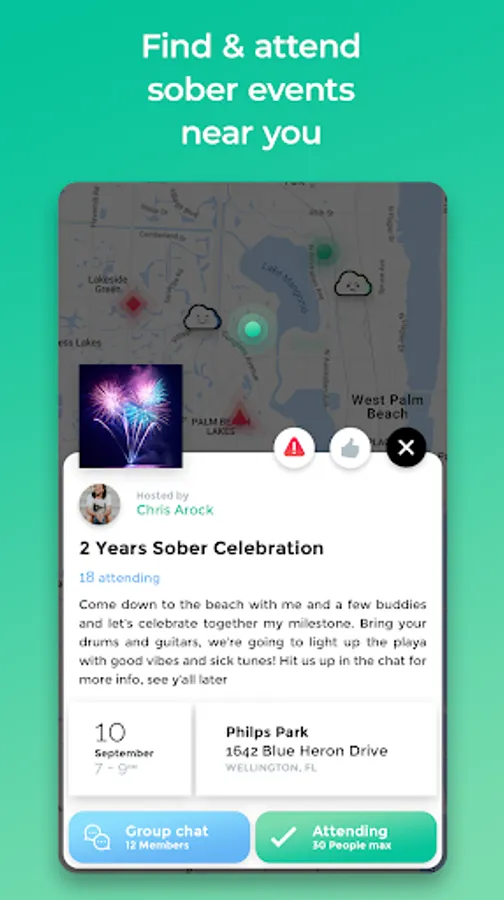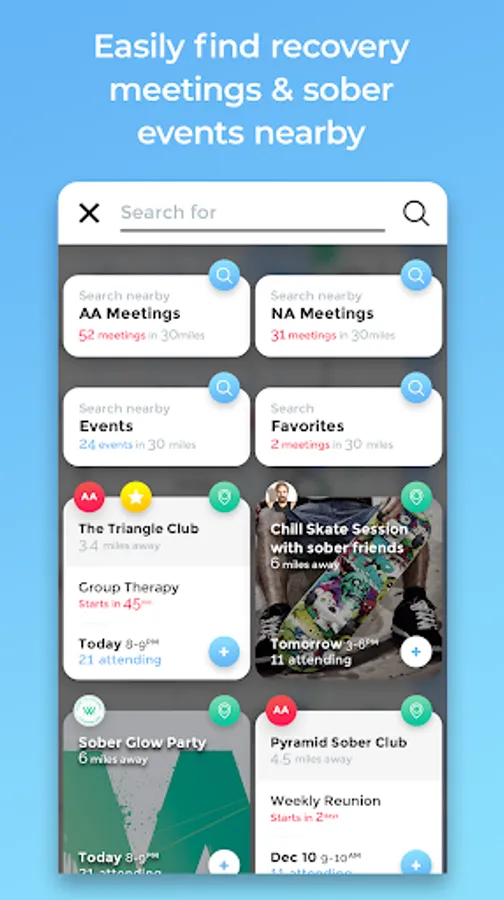 Request rides to 12-step meetings, find other sober people, host events, and earn points