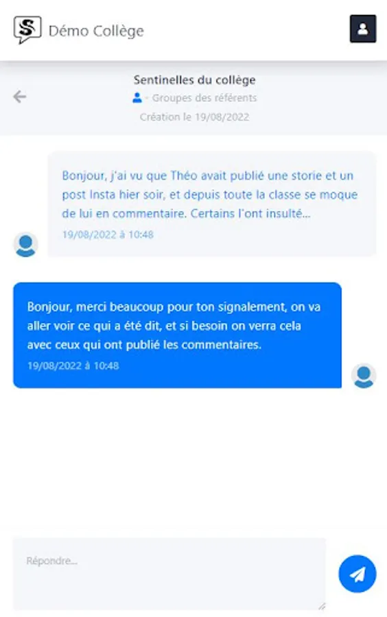 The first French application that allows the Sentinels to be able to report acts of harassment and cyberbullying in schools.