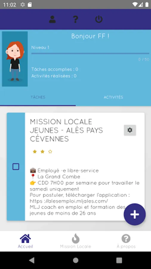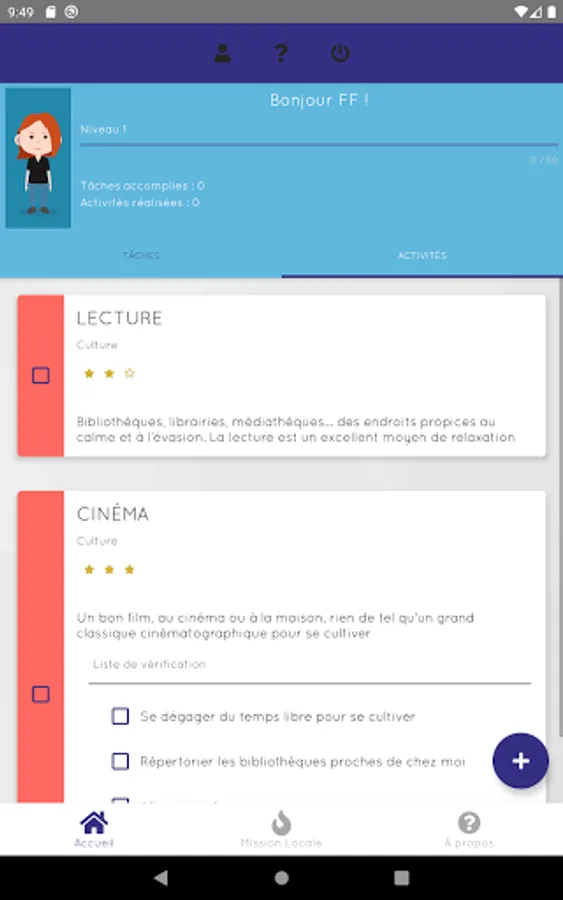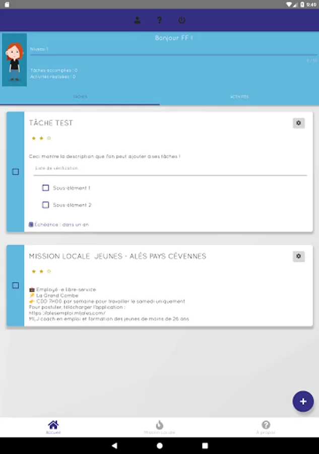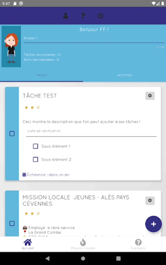- Creation of tasks designed by the Mission Locale Jeunes - Alès Pays Cévennes and to be completed in the form of quests and personal objectives