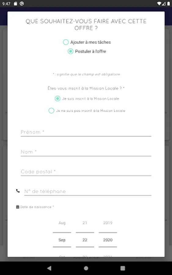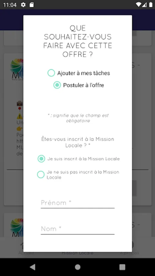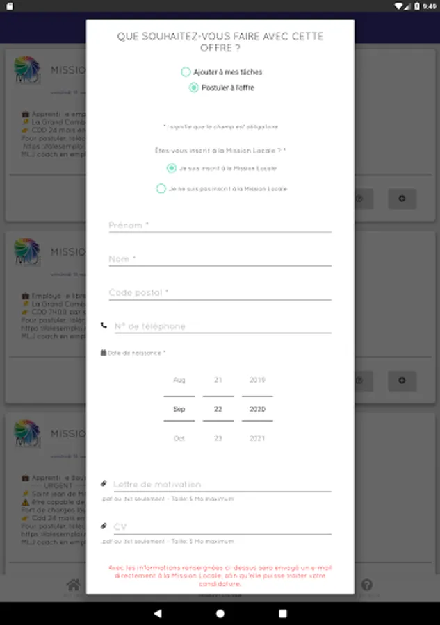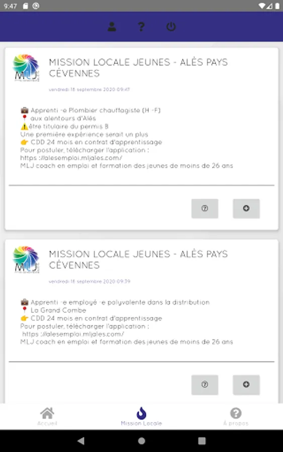 The mobile application intended for all people likely to be supported by the Local Youth Mission - Alès Pays Cévennes.