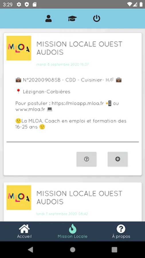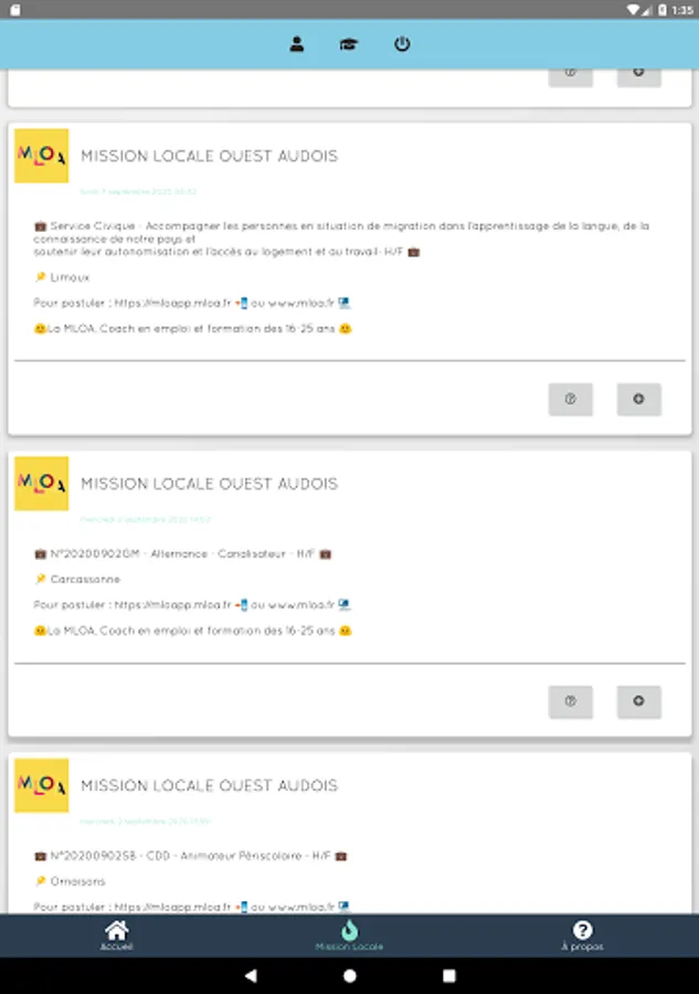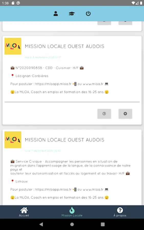 - Real-time follow-up of the Facebook news feed of the job offers of your favorite Local Mission
