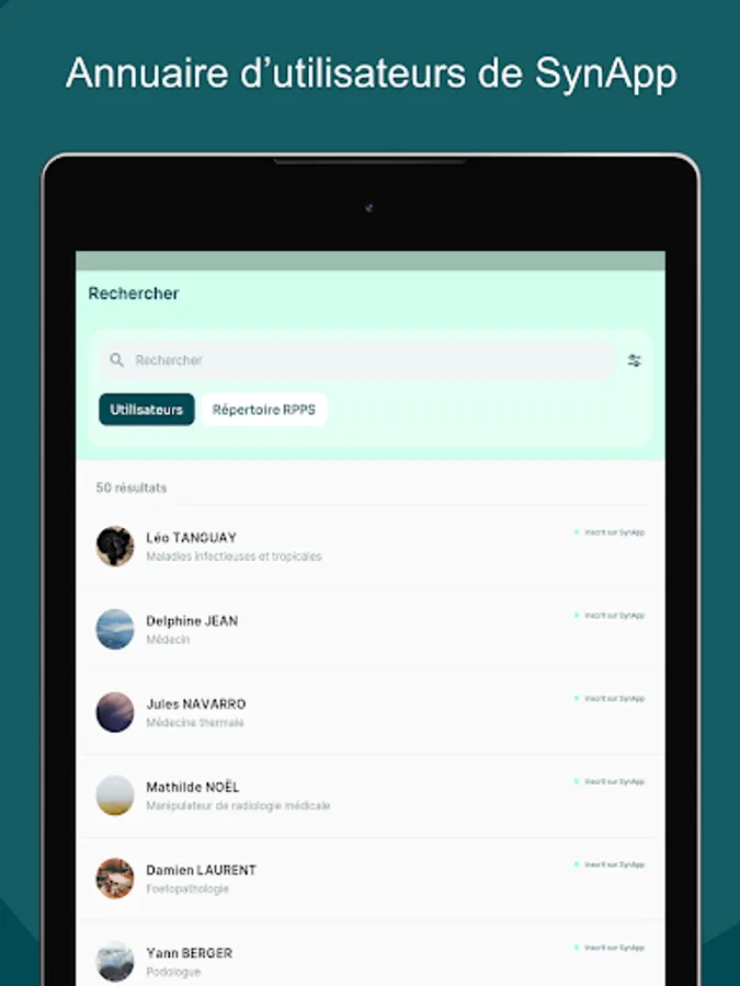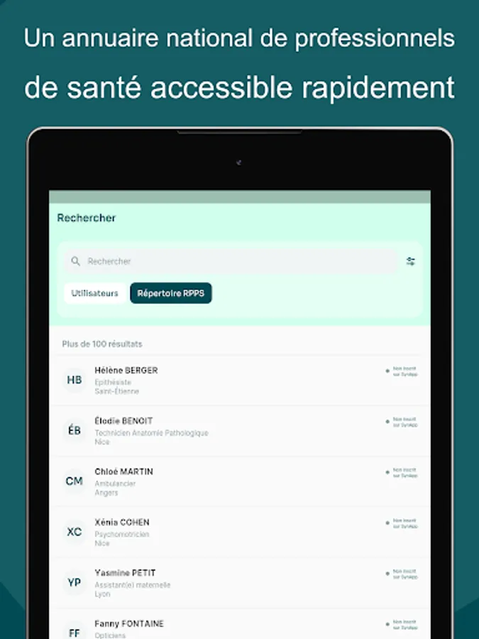 Users are verified to ensure that only healthcare professionals can register. You can search for your colleagues via the national directory (in France for the moment) and take advantage of the power of the network.