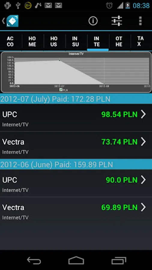 Bill statistics provide very clear information about payed bills. You could observe trends and detailed information per each category.