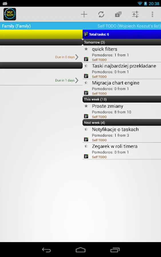 Self TODO allows add task or import it from Google Tasks, estimate it and track work progress. And that's it. Plan, prioritize, control execution, focus and check the value.