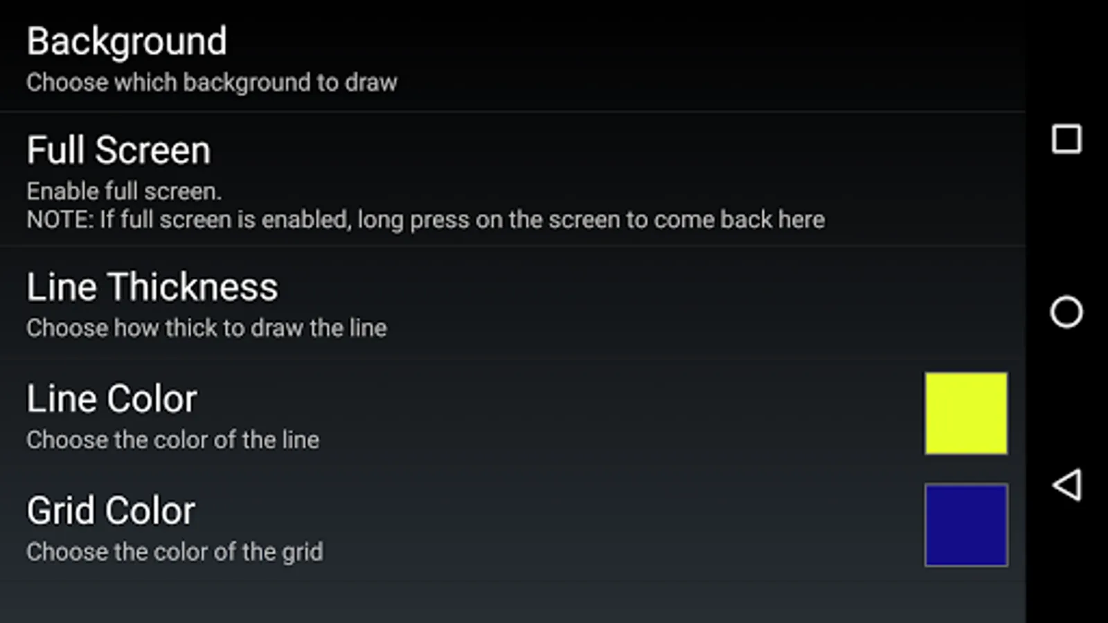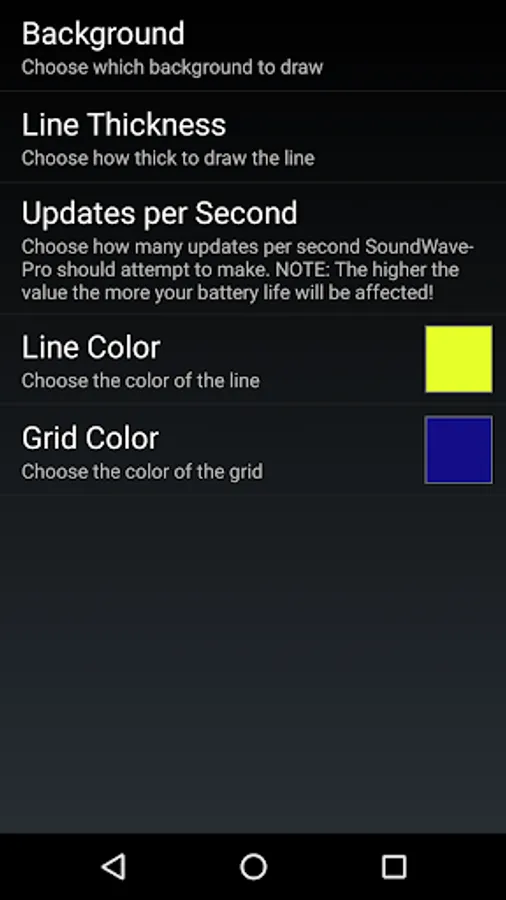 An application that shows the sound wave of whatever is picked up by your device's microphone. You can also change the line thickness and color of the line, go full screen, or show a grid in the background. You can even set it as your live wallpaper!