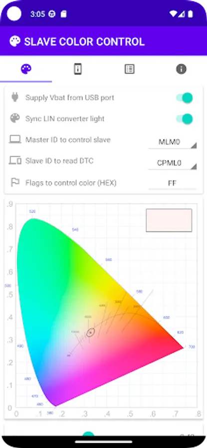 This app is used to control HKMC slave based on LIN communication. To use this app, you need a LIN converter supplied by the manufacturer.