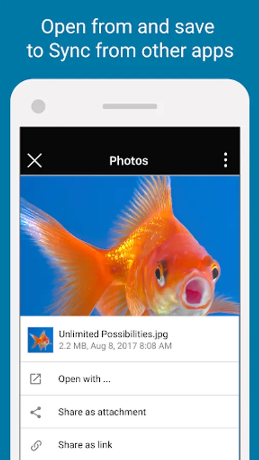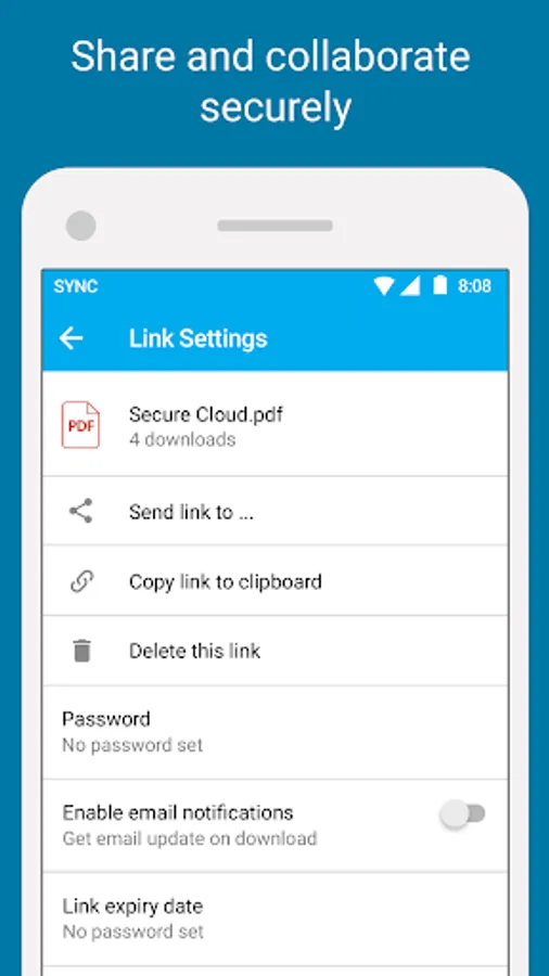 Sync's end-to-end encrypted cloud storage ensures that only you can access your data. We can't read your files - nor would we want to - ensuring that your documents, photos and videos are safeguarded from unauthorized access.