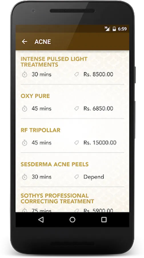 - Information on the duration and cost of each treatment is stated at the point of making the booking
