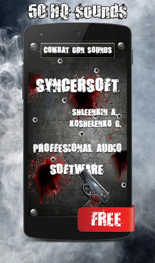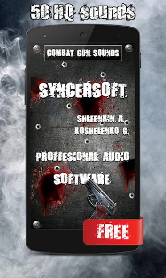 Enjoy high-quality sounds of different types firearms such as pistols, submachine guns, assault rifles, sniper rifles, submachine guns, shotguns and grenade launchers. Use silencer for quiet sounds and without a muffler for loud ones. This application uses 50 different realistic sounds.