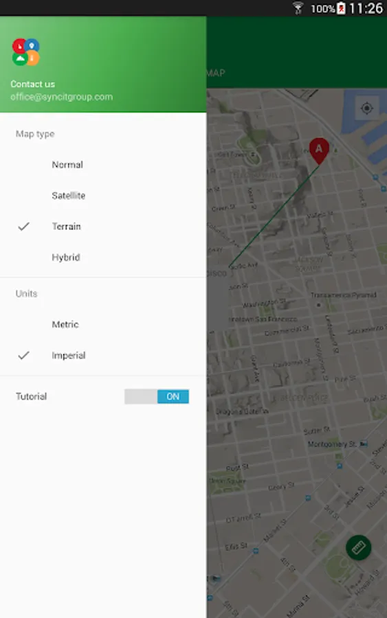 App also includes custom settings both for metrical and imperial units. Map view can be changed as well.