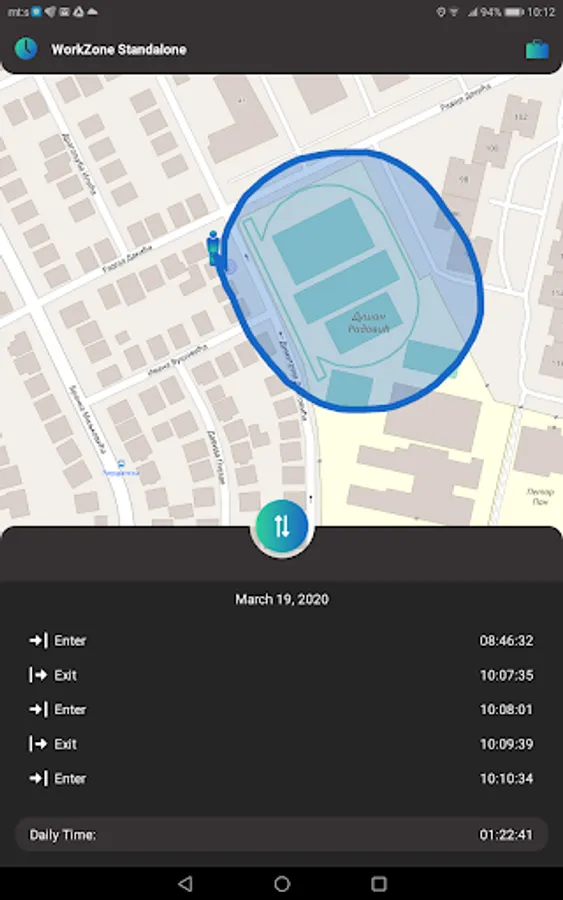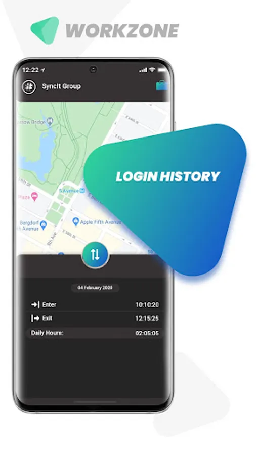 Work Zone Standalone is SyncIt Group’s smart application, a prototype version based on the technology behind the I’m Here App, for logging employees’ working hours.