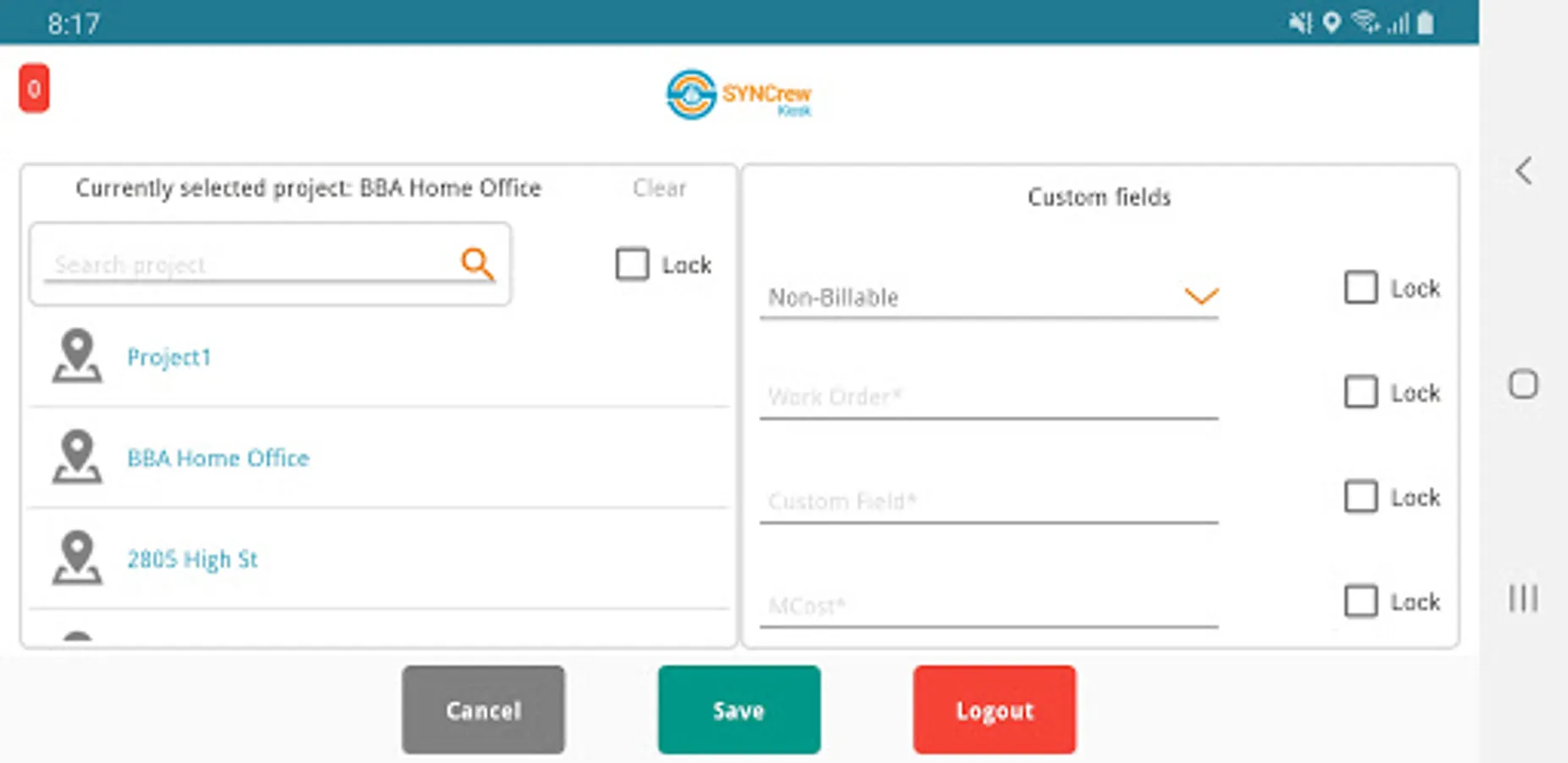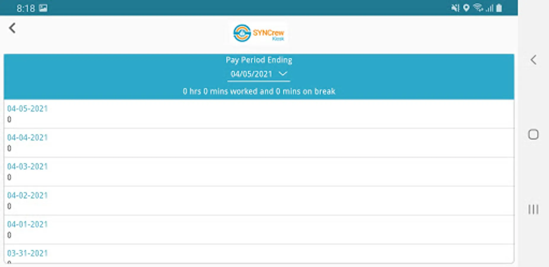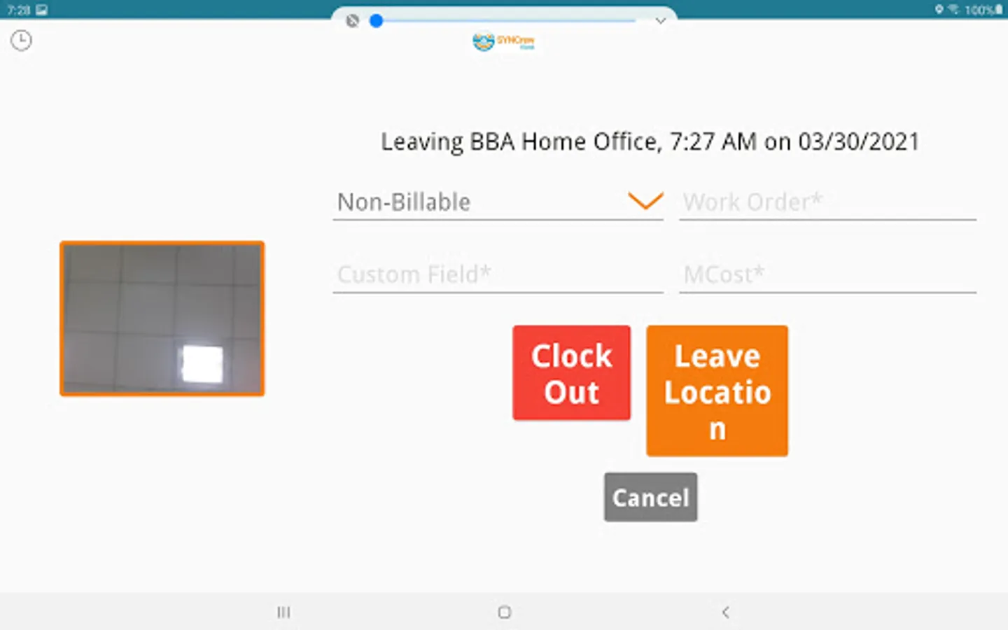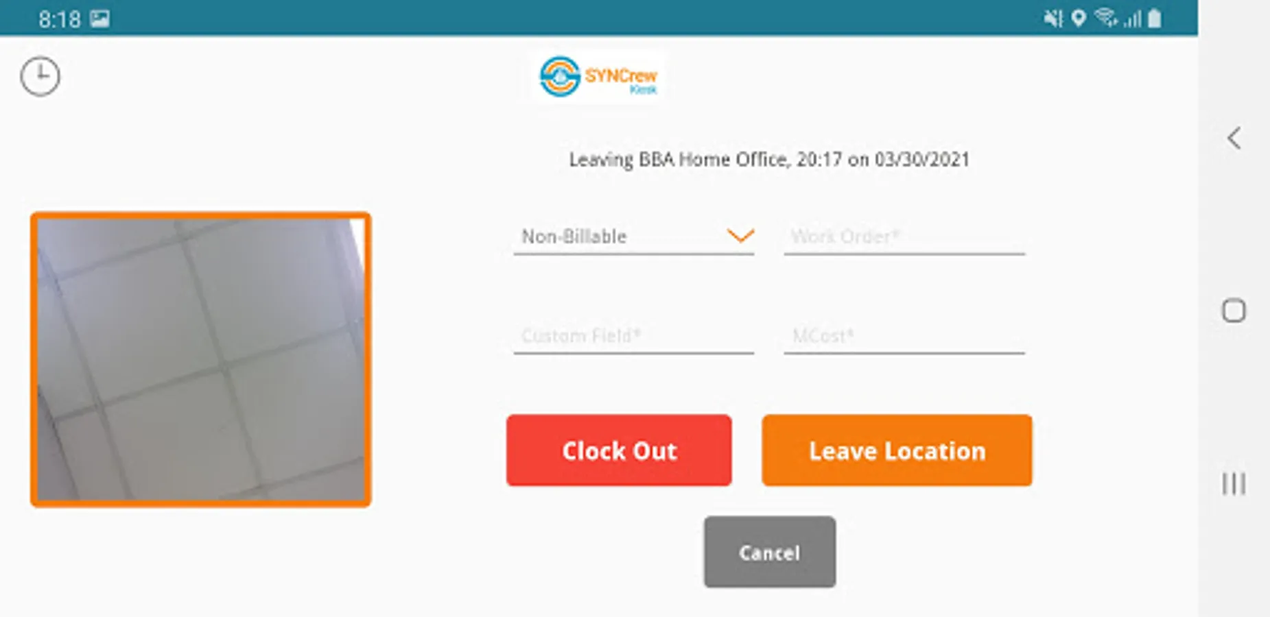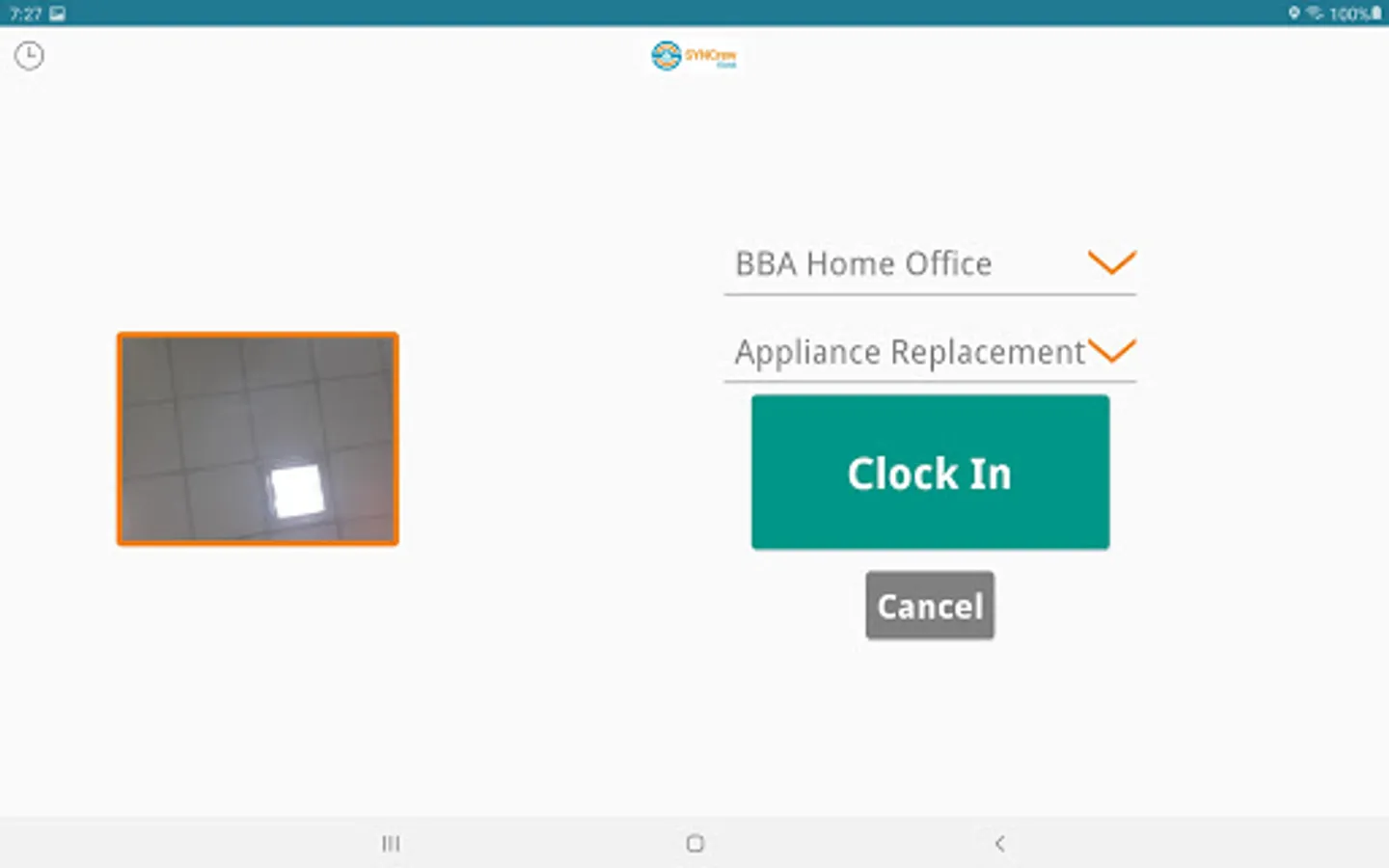 The SYNCrewKiosk app is designed for tablets but also works on smartphones. It allows employees to clock in on a single device on site and takes photos of the employees at cocking, preventing buddy punching. You can use it with the same SYNCrew account for regular smartphone users