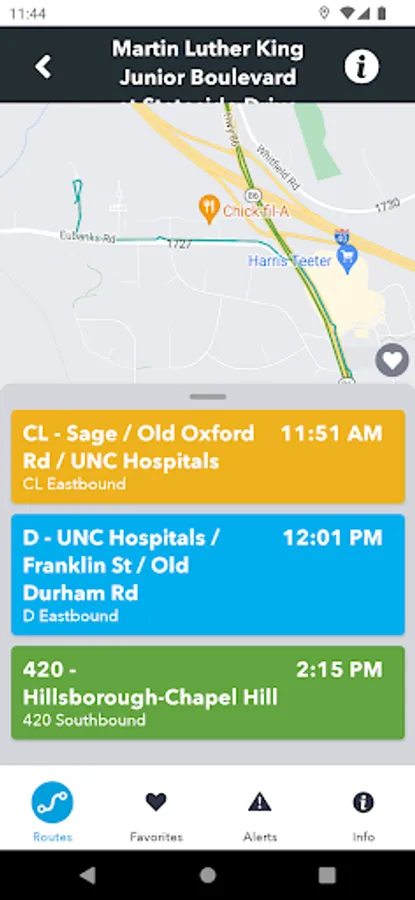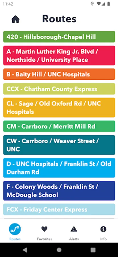 Provides real time tracking of Chapel Hill Transit buses serving the towns of Chapel Hill and Carrboro. Allows users to save favorite stops and create automatic reminders for bus arrival times. Displays up to the date announcements regarding service changes, weather delays, and other news.