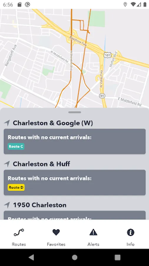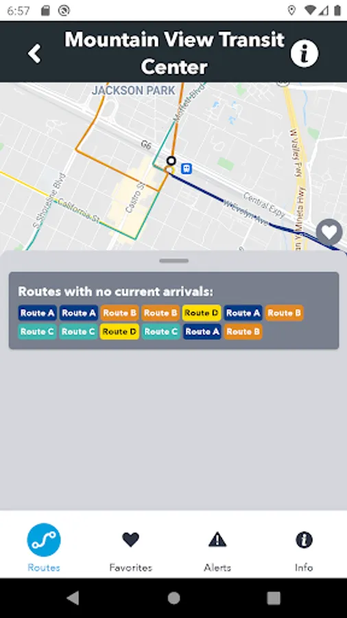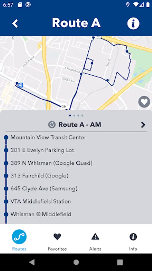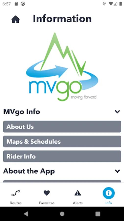 RIDEMVGO provides real-time tracking information for the MVgo shuttle service in Mountain View, CA. Use the app to view real-time shuttle arrivals, mark favorite stops and routes, set reminders, sign up for alerts, and access general information.