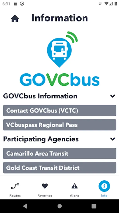 The GOVCbus app provides real-time arrival information for all bus services in Ventura County. Use the app to find out where Ventura County transit will take you, and when your next bus will arrive. Mark favorite stops, set reminders, get alerts, and plan your trip. This service is provided by the Ventura County Transportation Commission on behalf of the transit operators of Ventura County including Gold Coast Transit, VCTC, Thousand Oaks Transit, the Valley Express, Simi Valley Transit, Moorpark City Transit, Ojai Trolley, Kanan Shuttle, and Camarillo Area Transit.