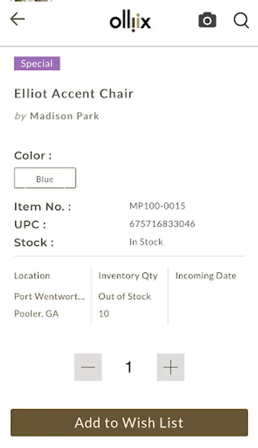 An app for olliix.com, which will let sales rep or dealer to use camera to scan UPC code to search product.