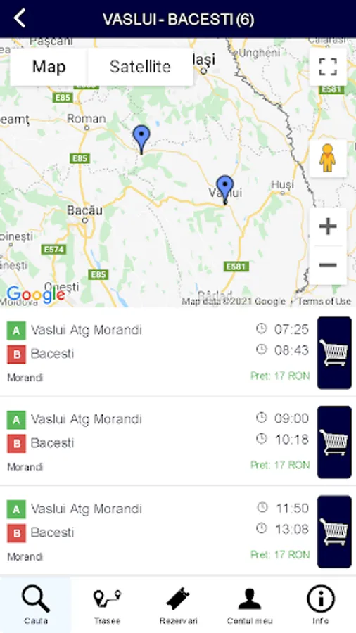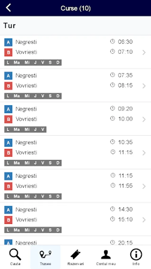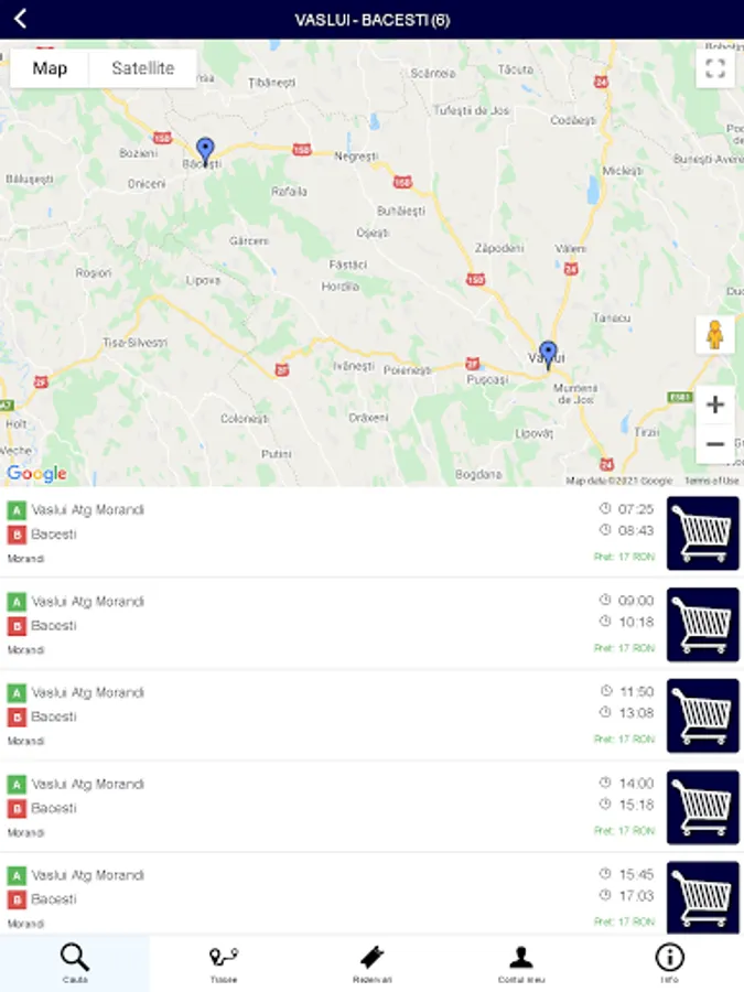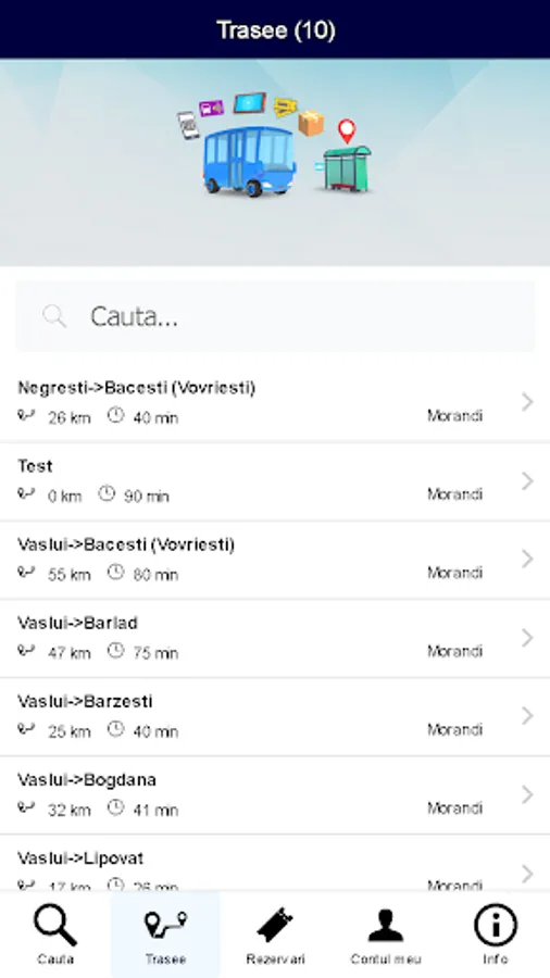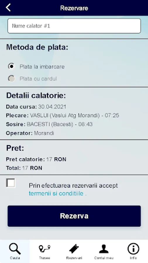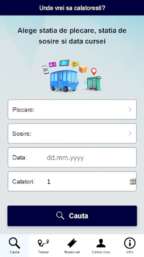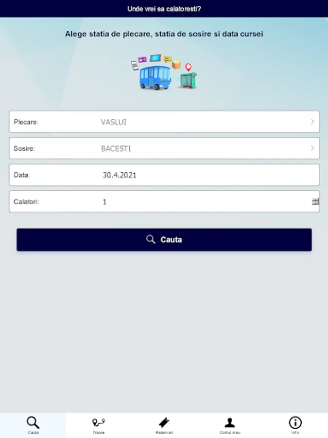 Mobile application for county and inter-county passenger transport for passengers that allows them to find out about flights, traffic schedules and prices on certain relationships, to make reservations and payments online, to provide ratings for flights, to be informed about the location where the means of transport is located and to receive information regarding certain events.