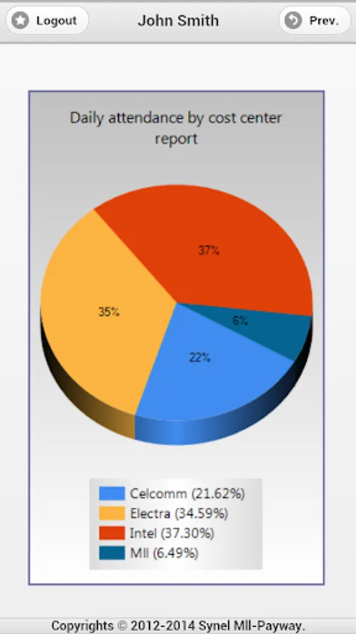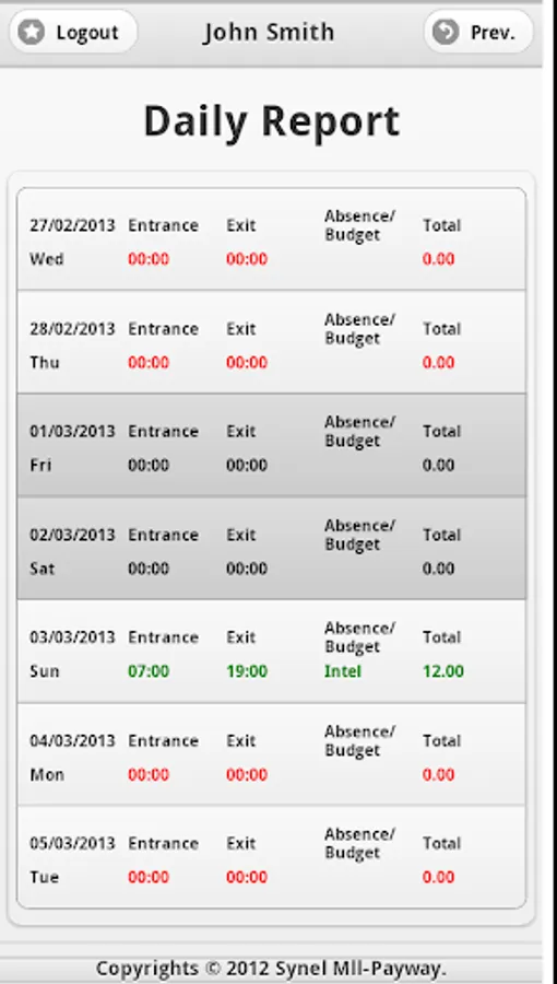 * Employees can accurately view any of their time reports, amount of hours, displayed with details on In,
