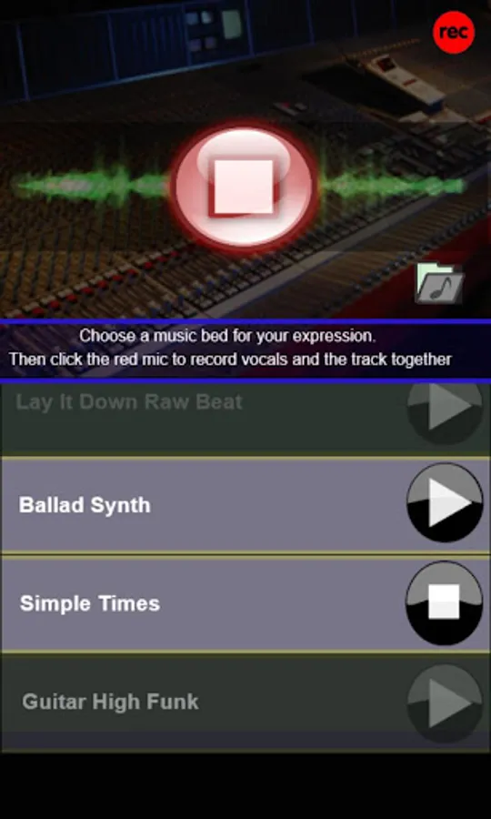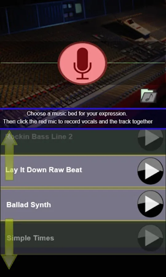 If you don't like to sing but prefer to rap then pick your favorite beat from the studio track mix and rap the lyrics you composed. Raps and songs can be saved and even uploaded to the community of artists.