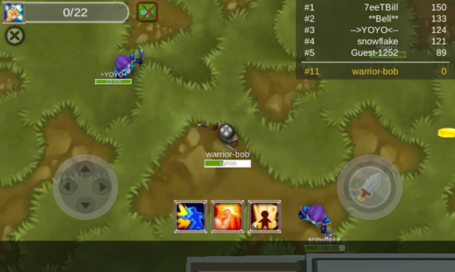 The game world is rather large, and you do need to collect power ups and more health if you want to stay alive. The idea is to boost your attack ability and health as much as you can, because some warriors will try to work together to defeat you if possible.