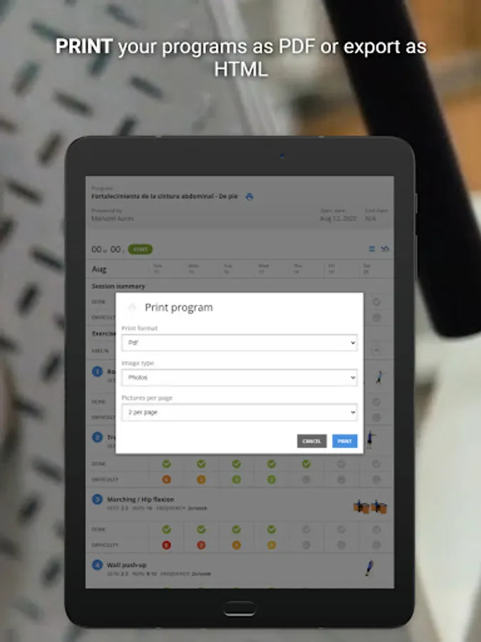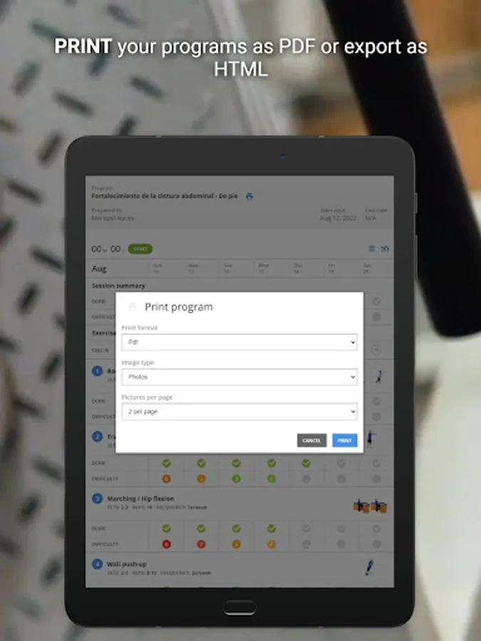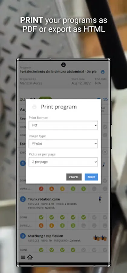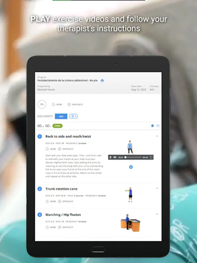 Track your program with the help of personalized therapeutic exercises, remember that each program is designed exclusively for you. Take advantage of our tool to improve your physical condition and recovery.