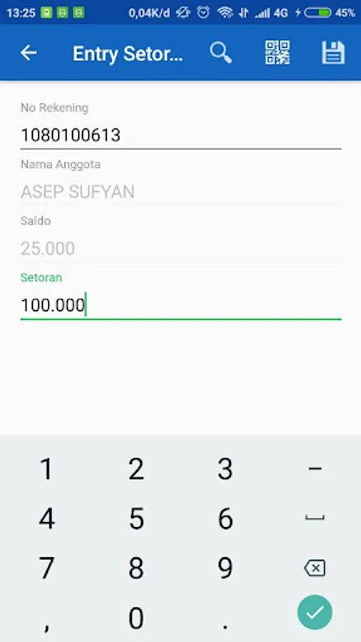 Entry setoran dapat dilakukan secara offline, sehingga transaksi dapat berlangsung meski tidak ada jaringan internet.