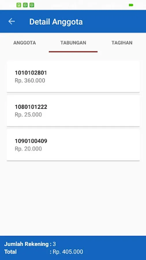 Menampilkan informasi anggota dan detail berupa data tabungan dan data tagihan
