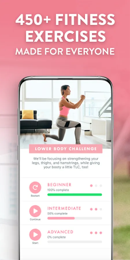 - Over 450+ workouts custom for your fitness level: Beginner, Intermediate or Advanced