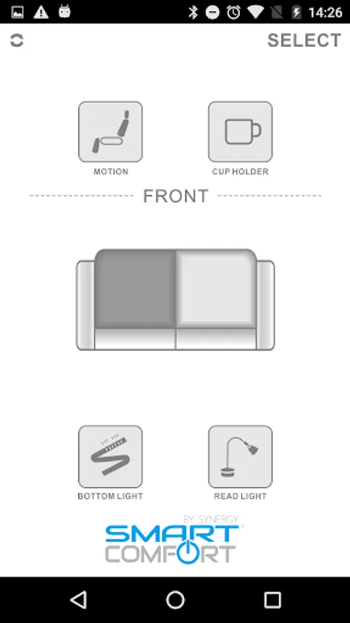 This bluetooth 4.0 APP helps to connect with the bluetooth control box from SYNERGY, you could adjust the motion with your mobile device or handset. You can adjust your headrest, lumbar or recliner , you also can control the reading lamp, strip LED light and cup holder light with this app.