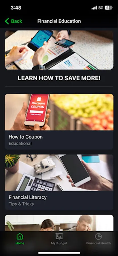 This app will provide basic financial education information. It will allow you to create a simple budget, read articles, watch videos, utilize savings tools, and contact a source to discuss help with your finances. The goal of this app is to help develop a better understanding of your financial situation. This app will not only help you understand your situation, it will provide some tools to possibly improve your situation.
