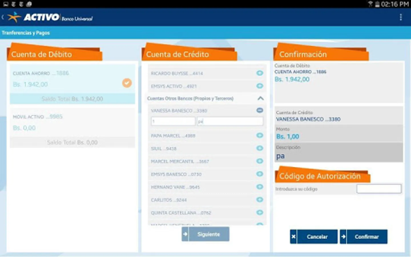 - Transfers to third party accounts in Banco affiliates previously Active Active Online.