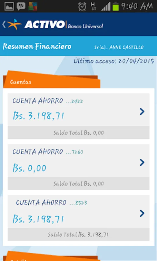 - Check balances and movements of your accounts, loans, credit cards and investments you have in bank assets.
