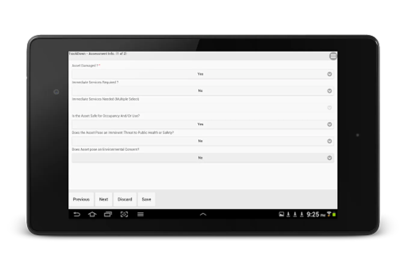 TrackDown - Government Edition allows users with TrackDown municipal/government accounts to capture field data via an Android device. Currently not available to the general public at this time. Download this application if you need to perform Damage Assessments for your municipality. If you are a municipality or government entity looking to automate your field data capture from paper and older windows-based software, contact us at trackdown@synergyid.com.