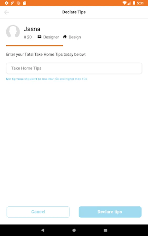 Using modern design and technology, this app makes clock in & out of working shifts extremely easy and fast for employees. It also gives them the opportunity to review their work hours in real time and to declare their tips at the end of the working day.