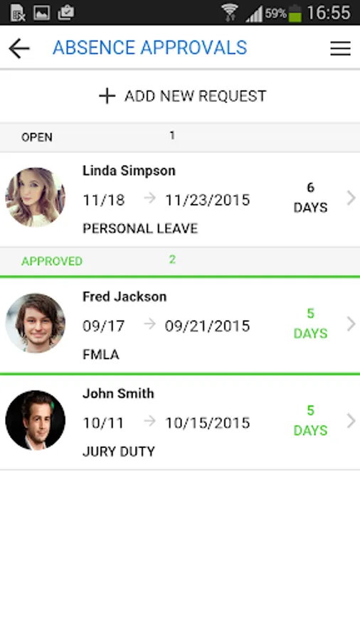 Employees can request time off directly from the application, attaching a note if necessary. Managers can then approve time off requests directly from their smartphones as well. The system will present all relevant validations to ensure the manager understands all implications prior to approving the request.