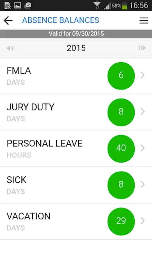 Employees and managers can view their real-time balances against any accrual or entitlement tracked in the workforce management system. The user will be able to see up to date balances in hours or days tracking things like vacation, personal leave, or sick days.