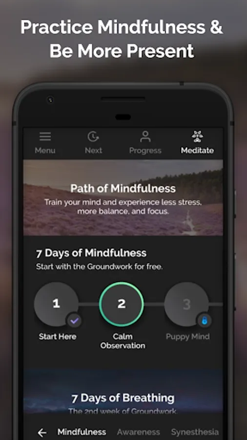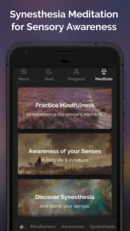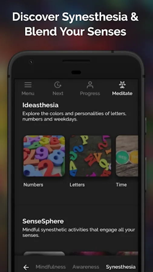 The Synesthesia Meditations are in the app’s “Sensorium.” There are 3 categories.