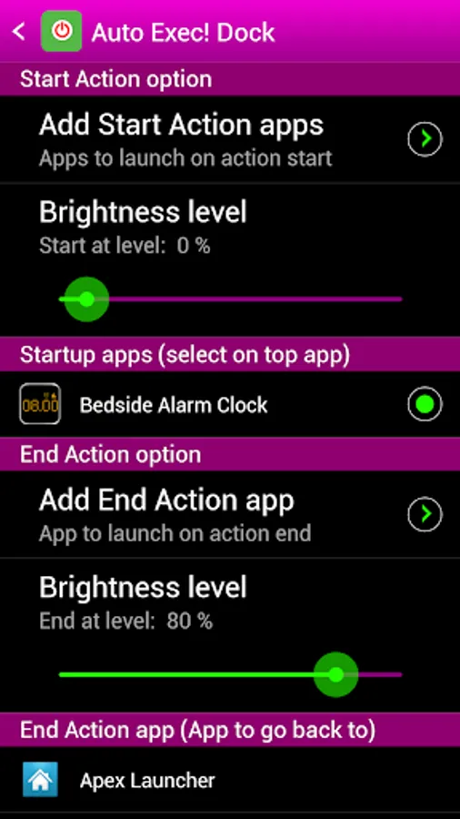 • Easily start your nightstand clock app when you dock your device and lower your device brightness.