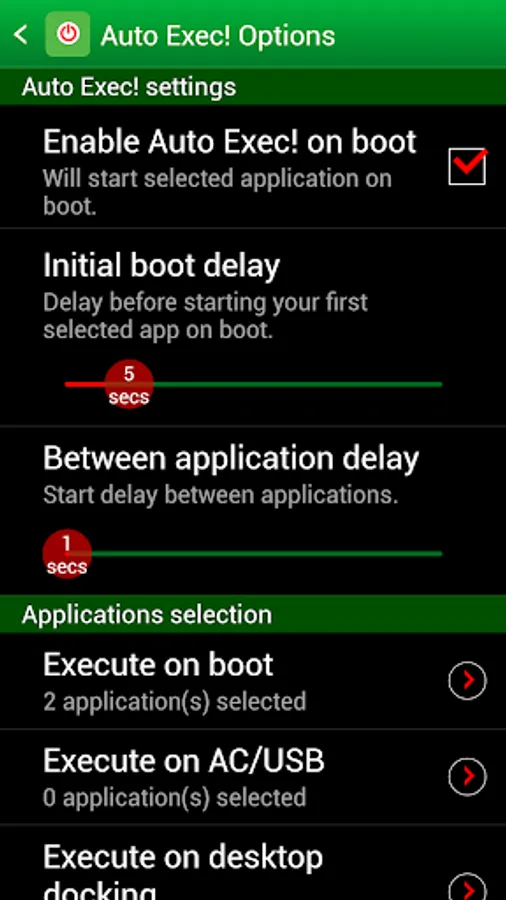 • Automatically start applications when you reboot your device.