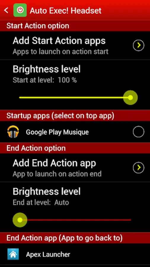 • Start your favorite music player when you plug your headset and go back to your launcher when you unplug them.