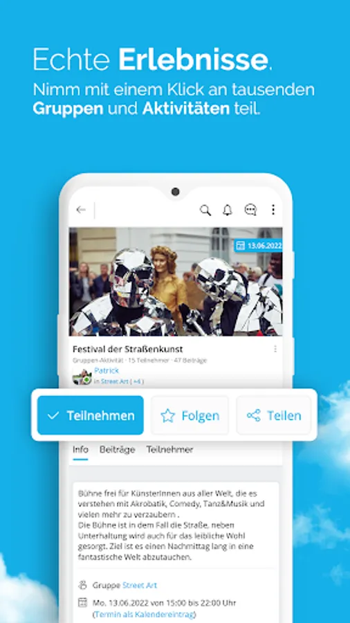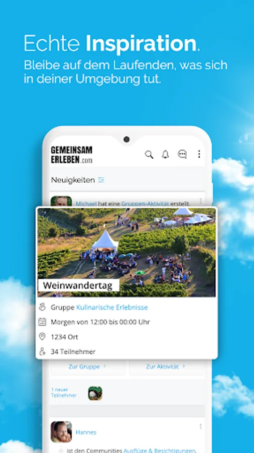 Joint Experience is a safe and free platform where you can meet enterprising people with the same interests (powered by friendseek). Discover exciting leisure activities and let yourself be motivated by the countless reports from our members.