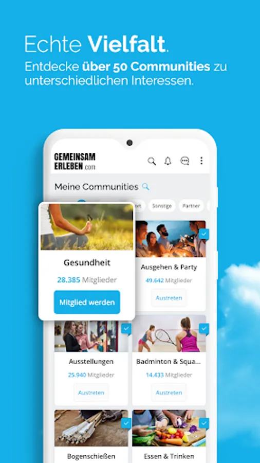 • Find new friends, leisure partners and sports partners in your area who match you and your interests.