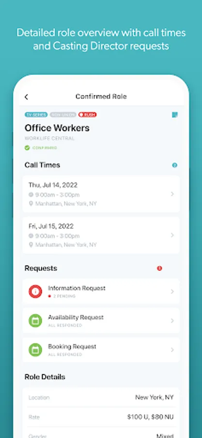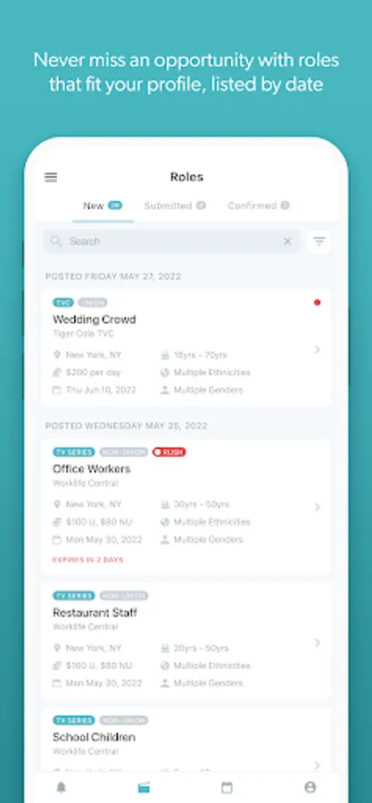 Submit directly for Background roles, accept and view upcoming bookings and manage your calendar.