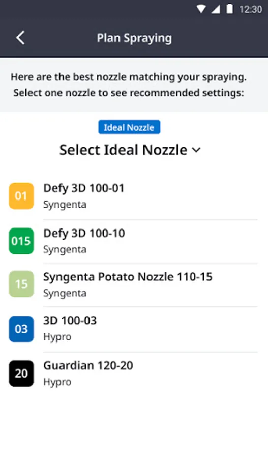 Cropwise Spray Assist uses expert application knowledge and applies it to real world scenarios, allowing growers and operators to better plan for applications of crop protection products. This helps ensure the products perform to the best of their capability. By incorporating localized weather data with Syngenta application expertise, Cropwise Spray Assist helps operators select which of their nozzles will provide the highest levels of performance based on the intended target, putting cutting edge technology into the hands of Growers and Operators.