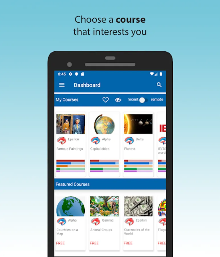 • Easily learn multiple languages with our exclusive reading, listening, writing, speaking, vocabulary, and grammar courses.