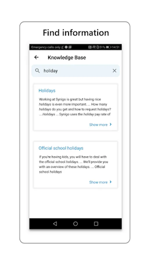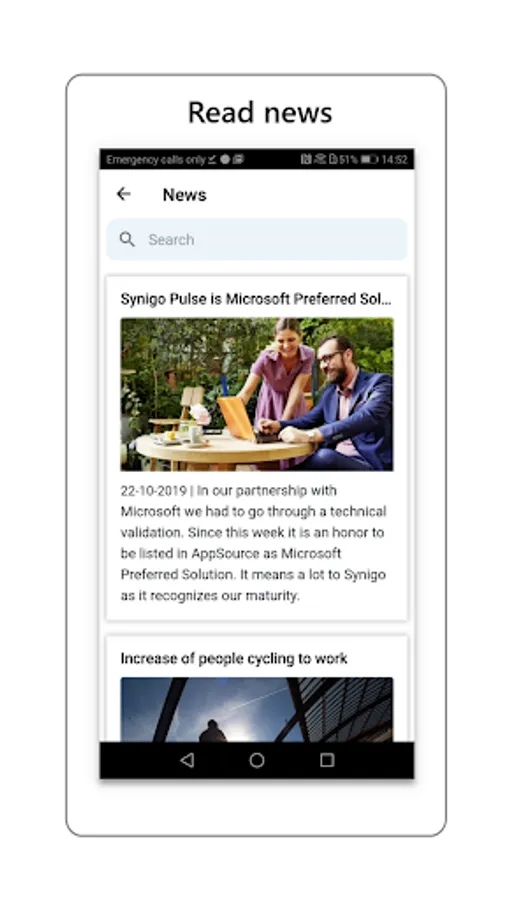 Synigo Pulse is the organization in your pocket. The native app is best at giving you access to all your organization’s resources. It keeps you informed. The benefits are