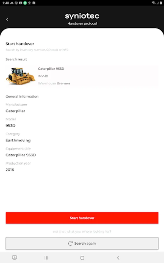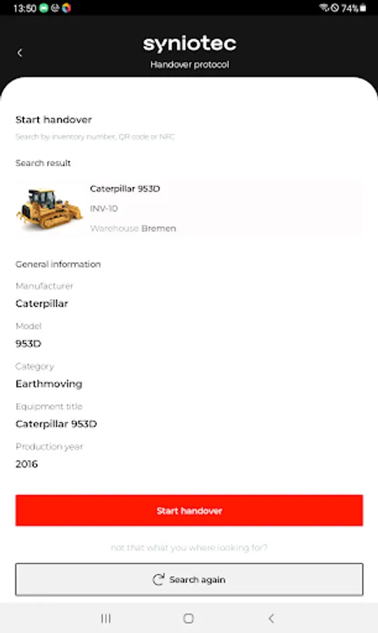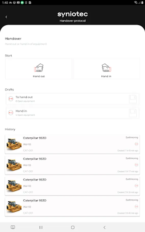- Seamless integration with syniotec Rental Asset Manager: Connect your account with syniotec Rental Asset Manager in minutes to access all your equipment records in one place.