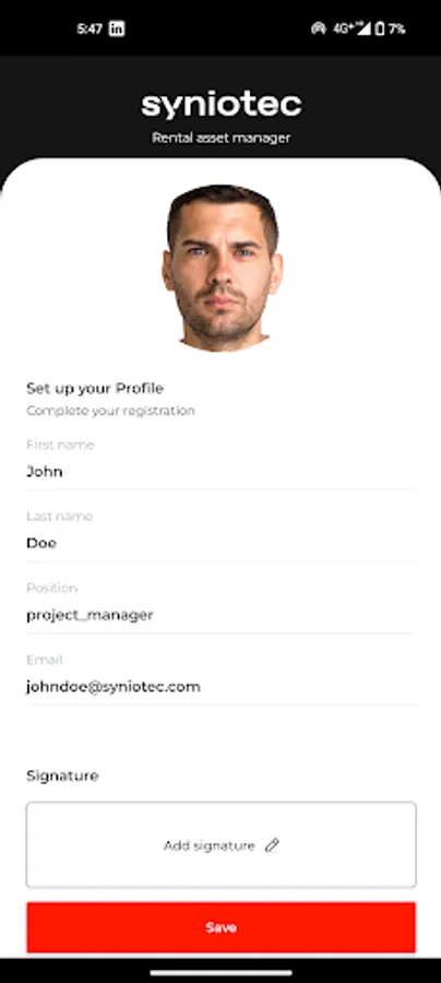 - Automatic data syncing with syniotec Rental Asset Manager: All information captured in the app is automatically synced with your account in syniotec Rental Asset Manager, saving you time and effort.